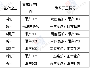 1、高爐調研樣本選取天津市共7家長流程鋼廠,16座大小高爐,高爐設計總產(chǎn)能為2030萬噸,目前共有11座高爐正常生產(chǎn),5座高爐停產(chǎn)檢修。根據(jù)《天津市2018—2019年采暖季工業(yè)企業(yè)錯峰生產(chǎn)工作方案》,我們對各鋼鐵企業(yè)限產(chǎn)評級和實際限產(chǎn)情況進行調研: