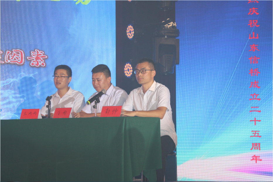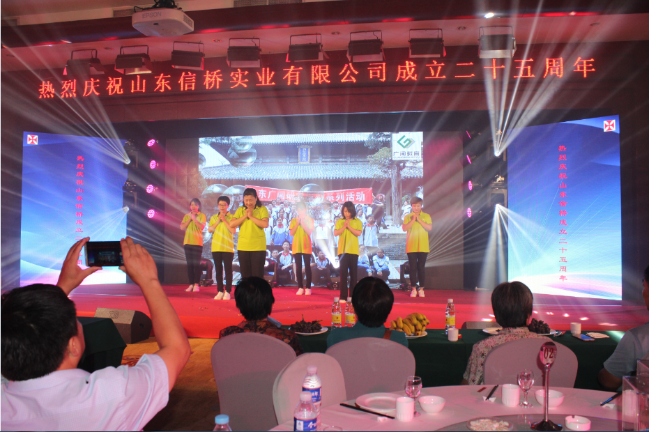 此次慶典晚宴參加人員除了信橋全體員工之外,還有部分老領(lǐng)導和老朋友,大家共同分享了信橋二十五周年的喜悅與精彩。慶典開始之前,演員們辛勤排練,燈光師、音響師共同配合,所有人為了晚會都在努力。下午5點28分,晚會正式開始,全體員工與領(lǐng)導集體合影,各個辦公室全體員工也各自合影。