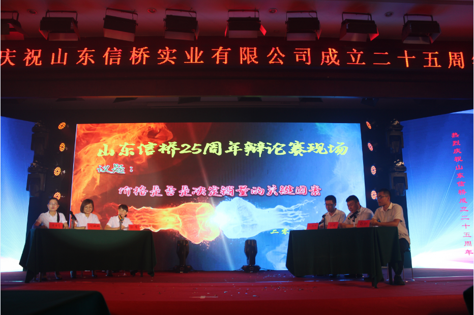 第五個節(jié)目是由信橋男生隊王丙丙、高雨、郭帥,女生隊徐賽、劉琳琳、宋金萍,客串周廣超、趙文玲帶來的《辯論賽》,辯論主題是價格是否是決定銷量的關(guān)鍵因素,雙方辯手就自己的觀點展開了激烈的討論,最后全體辯手共同朗誦《沁園春·信橋》。
